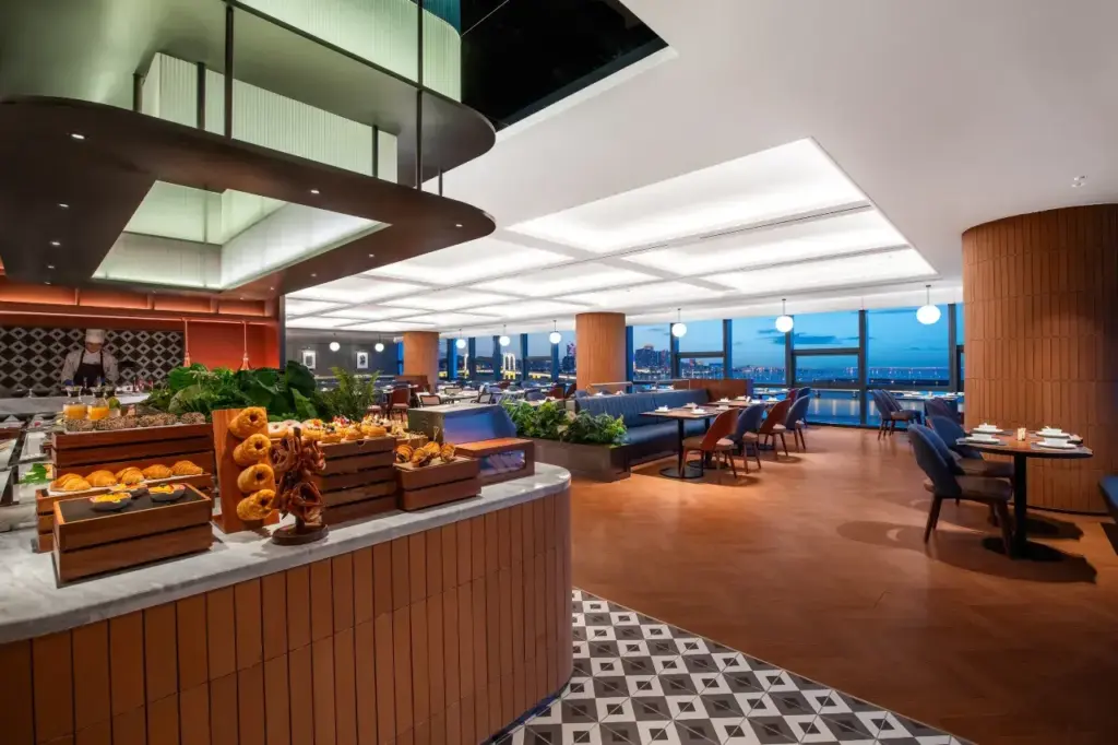 主自助餐厅 我们的旗舰餐厅提供丰盛的国际自助早餐和晚餐。餐厅设有专门的中式菜肴、西式经典美食、日式特色菜、东南亚风味菜肴和新鲜海鲜区,宾客无需离开座位即可尽享世界各地的美味。开放式厨房的设计让食客可以观看技艺精湛的厨师现场烹制菜肴,为用餐体验增添了戏剧性和透明度。.