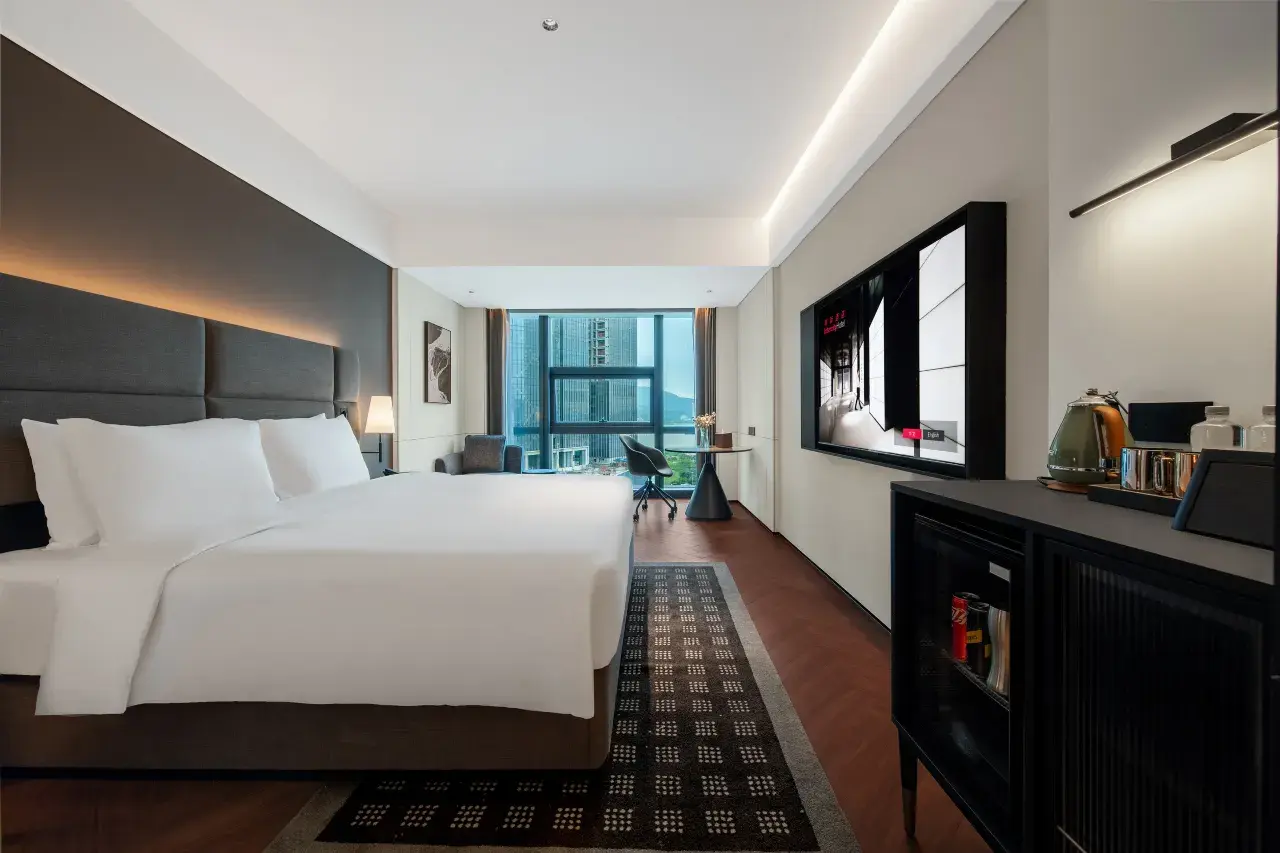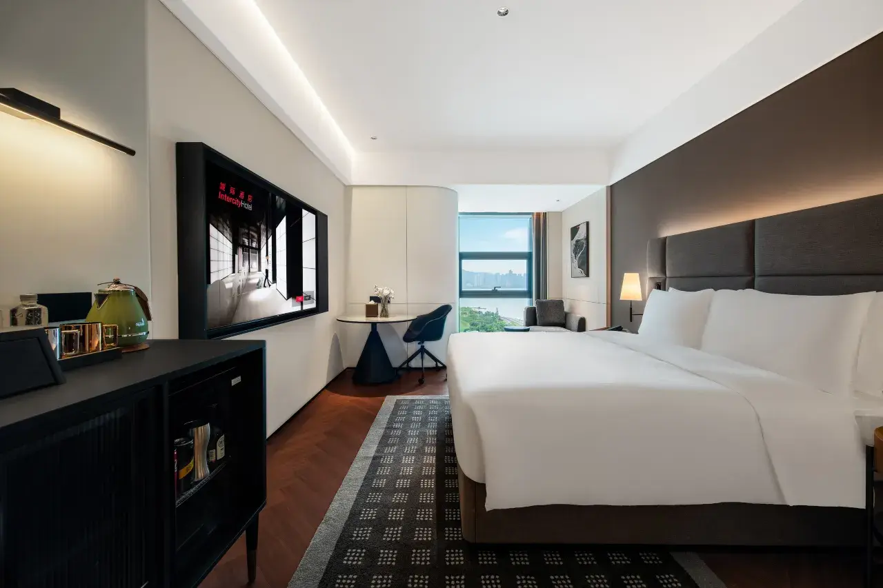 在以下地點體驗現代高效與海岸寧靜的完美融合: 珠海橫琴海景城際酒店. 。 我們的 城際豪華海景房 – 大床 經過精心設計,為希望欣賞珠海海岸線美景的單人旅行者或情侶提供高科技、舒適的休憩之所。.