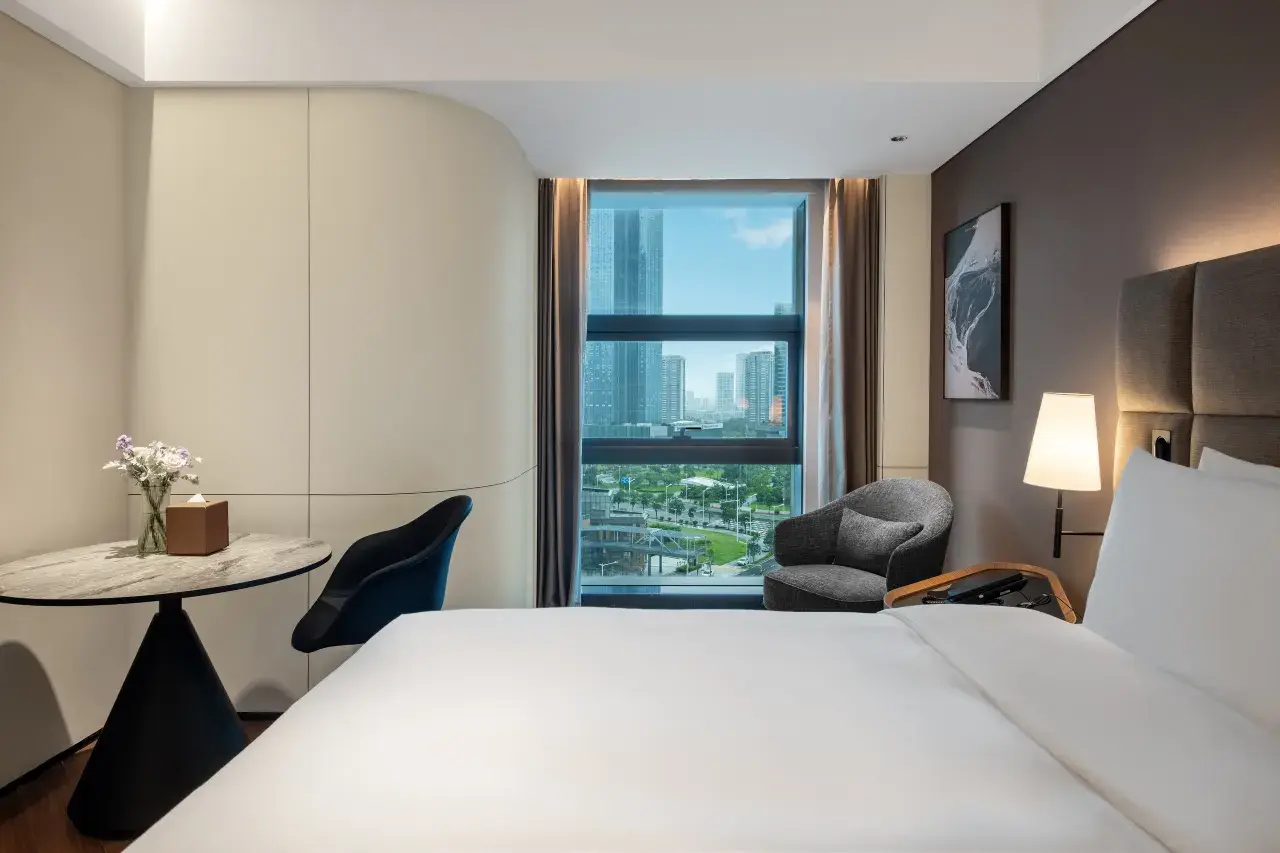 體驗現代都市生活的精髓 珠海橫琴海景城際酒店. 。 我們的 城際高級客房 – 大床 專為精明的旅客設計,他們重視效率、高科技便利性和位於珠海繁華的橫琴區中心地帶的精緻氛圍。.