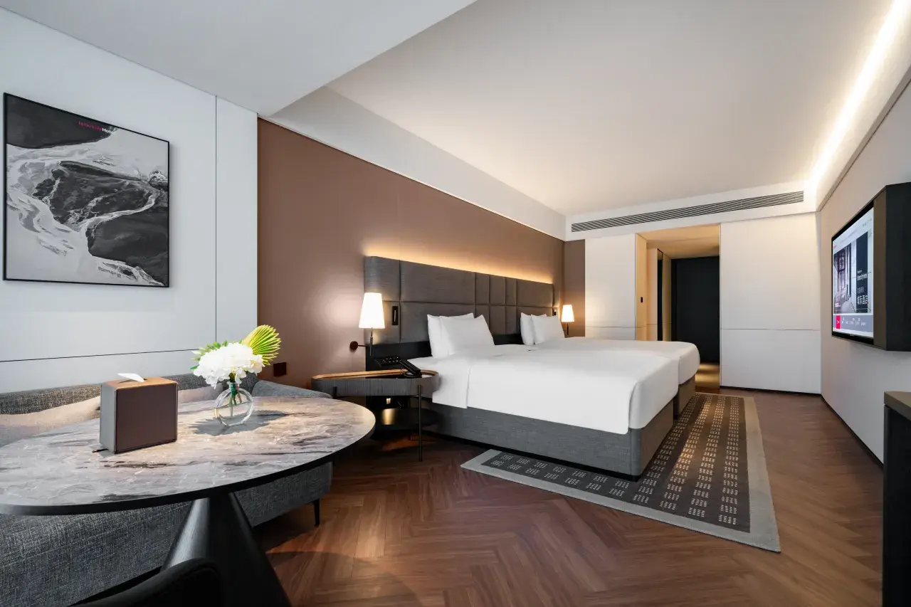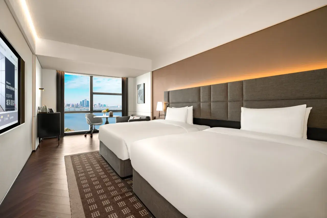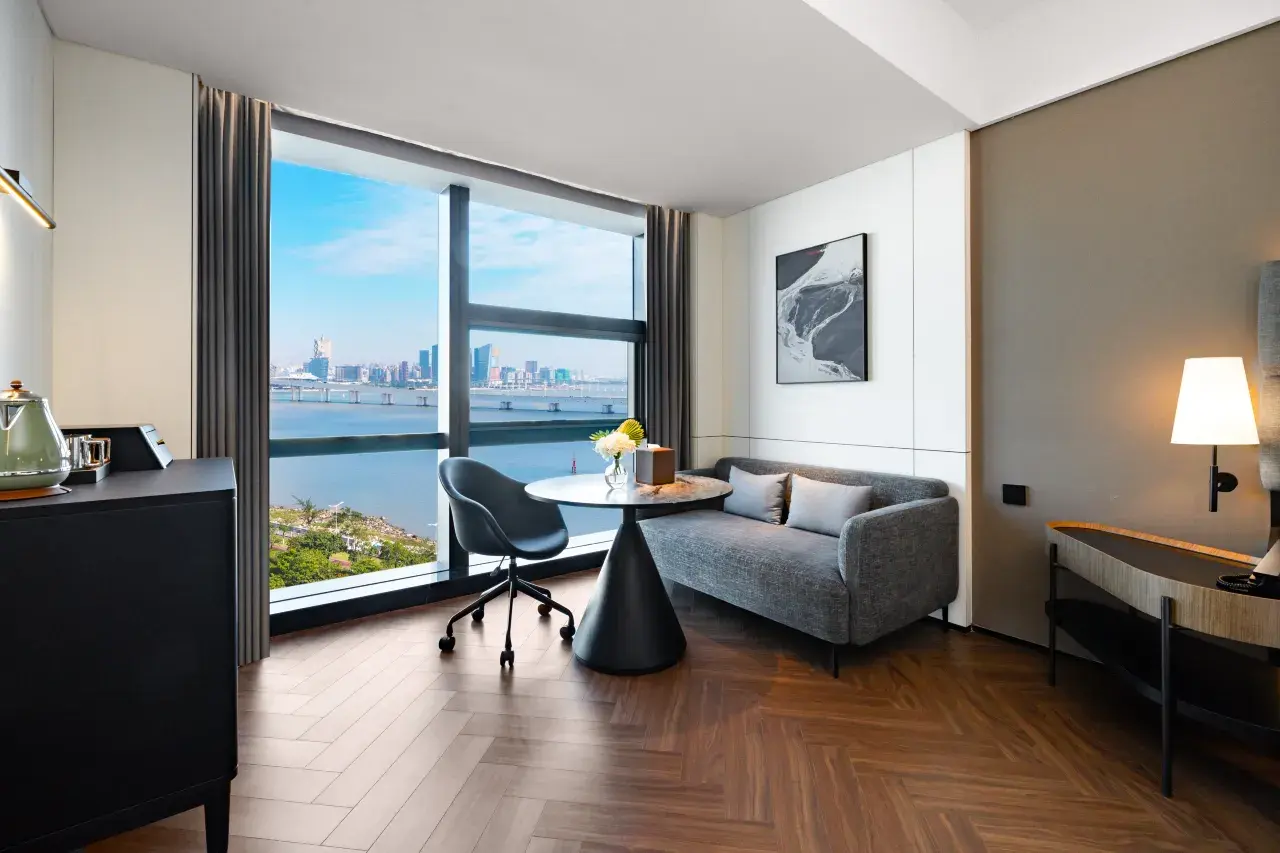 Welcome to the 珠海橫琴海景城際酒店, perfectly situated in the Hong Kong and Macao Financial Center. Our 城際行政海景房 – 雙床 is designed for discerning travelers who value both collaborative space and personal comfort, all set against a breathtaking coastal backdrop.