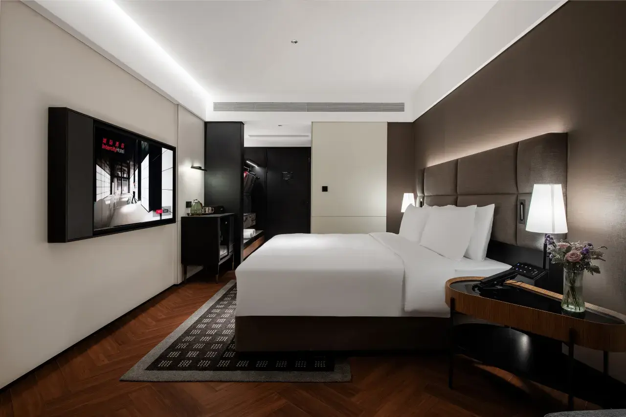 Experience the ultimate fusion of luxury and location at the 珠海橫琴海景城際酒店. 。 我們的 澳門景大床房 is designed for discerning travelers who appreciate expansive space, modern German-style efficiency, and a front-row seat to one of the most iconic skylines in the world.