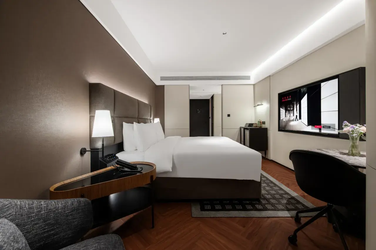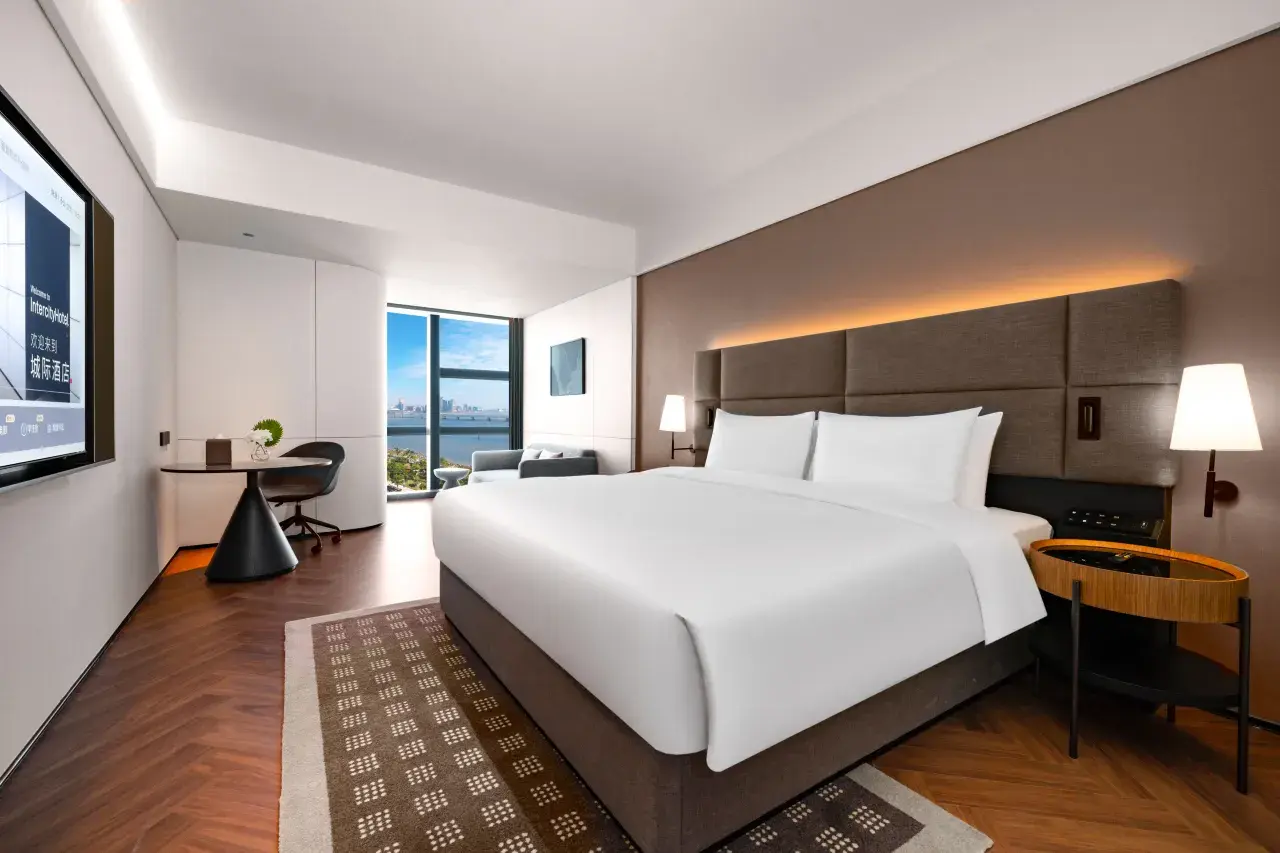 Perched on the 7樓至11樓, , 這 43平方米 sanctuary offers a breathtaking 海景 that looks directly toward the stunning Macau skyline. The center-piece of the room is a massive 2m wide King Bed, providing unparalleled comfort. Whether you are visiting for business or a romantic getaway, the combination of smart technology, elegant furnishings, and panoramic vistas makes this room a standout choice in Zhuhai.